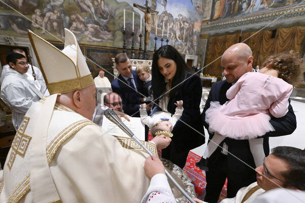 Caption: Pope Francis baptises 16 infants in the Sistine Chapel at the Vatican. As is customary on the Feast of the Baptism of the Lord, Pope Francis baptises 16 children under the frescoes of the Sistine Chapel.