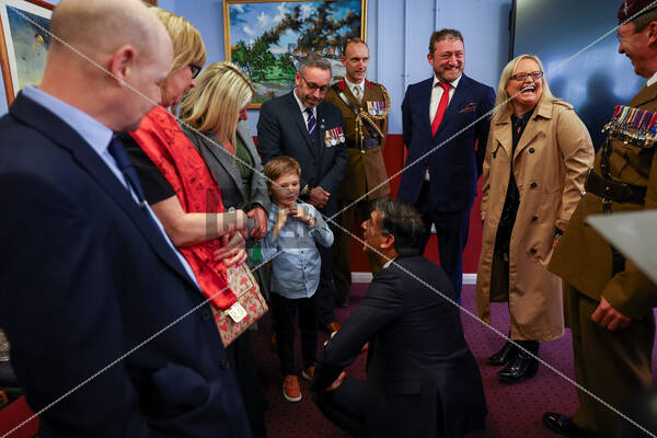 Caption: Prime Minister Rishi Sunak speaks with a child as he meets with families of the Parachute Regiment during his visit to the Helles Barracks at the Catterick Garrison in North Yorkshire