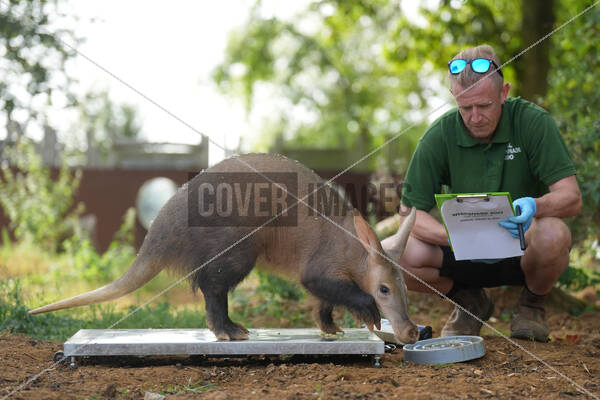 Caption: An aardvark named Doby is weighed by keeper Olly Bosher at the annual weigh in at ZSL Whipsnade Zoo in Bedfordshire. An important part of their care, keeping track of the creatures' vital statistics helps zookeepers and veterinarians keep track of the health and wellbeing of all the animals at the conservation zoo