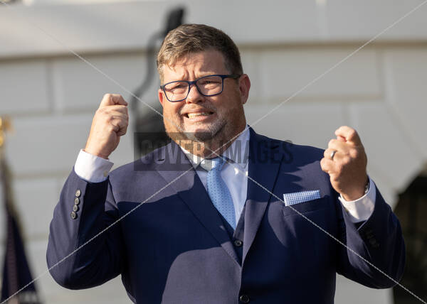 Caption: Mayor Neil McDevitt (Democrat of North Wales Borough, Pennsylvania) makes remarks on the South Lawn of the White House in Washington, DC during an event with United States President Joe Biden to celebrate the Americans with Disabilities Act (ADA) and to mark Disability Pride Month. According to Gallaudet University in Washington, DC, Mayor McDevitt is believed to be the first deaf person to be elected mayor of a municipality anywhere in the US in modern times