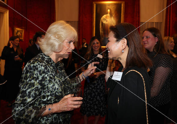 Caption: Queen Camilla speaks with Dr Linda Yueh during a reception at St. James's Palace in London, to celebrate the Commonwealth Diaspora, ahead of the Commonwealth Heads of Government Meeting in Samoa