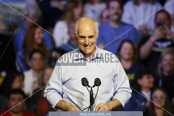 Caption: Senator Bob Casey Jr. speaks before former U.S. President Barack Obama during a campaign rally in support of Democratic presidential nominee, U.S. Vice President Kamala Harris at Temple University