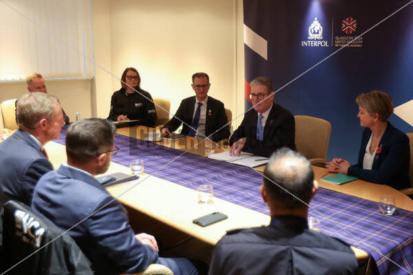 Caption: Prime Minister Sir Keir Starmer and Home Secretary Yvette Cooper attend a meeting with senior members of law enforcement agencies based in the UK and other countries during the Interpol General Assembly, at the Scottish Event Campus (SEC) in Glasgow