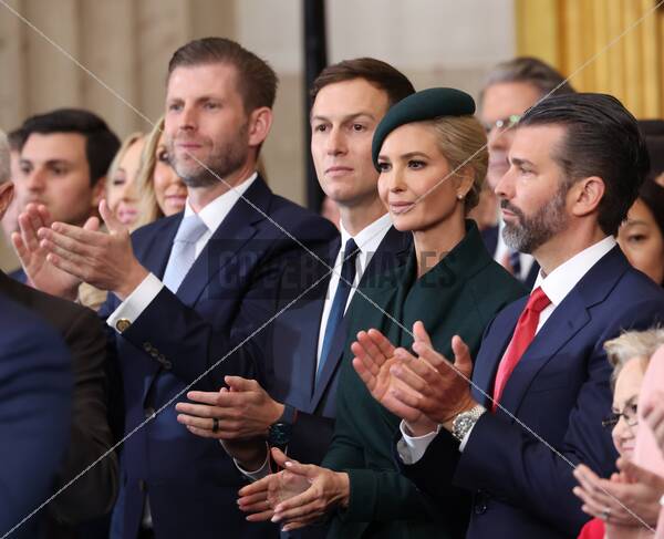 Caption: Eric Trump, Ivanka Trump and Donald Trump, Jr. look on on the day of the Presidential Inauguration of Donald Trump at the Rotunda of the U.S. Capitol in Washington, U.S.