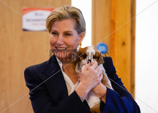 Caption: The Duchess of Edinburgh with 9 week old Cavalier King Charles Spaniel puppy Lord Louis of Spudringham during a visit to Dogs for Autism in Alton, Hampshire, the first charity exclusively providing autism assistance dogs