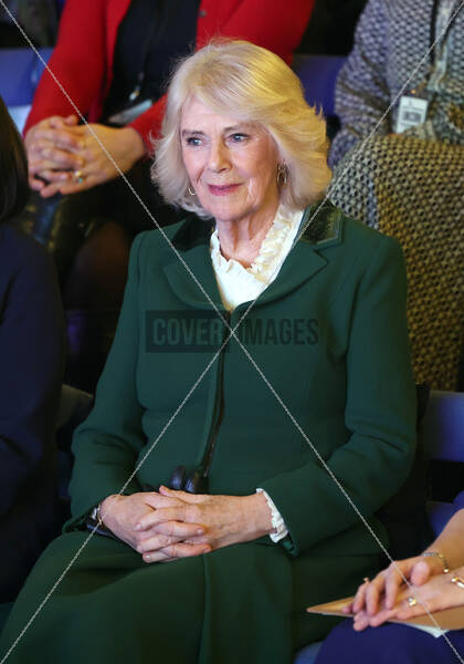 Caption: Queen Camilla listens to an "In conversation" by Creative Associates involved in the Unicorn's current production of "Pig Heart Boy", discussing the importance of creativity in childhood, during a visit to the Unicorn Theatre, London, to celebrate the launch of the Unicorn's Creative Hub